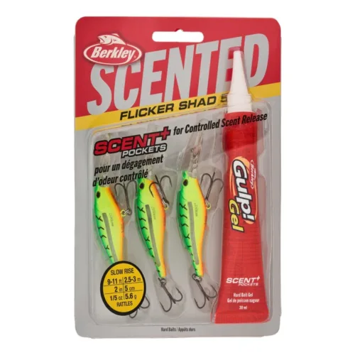 Ensemble de 3 « Flicker Shad » et gel « Gulp » – Perchaude